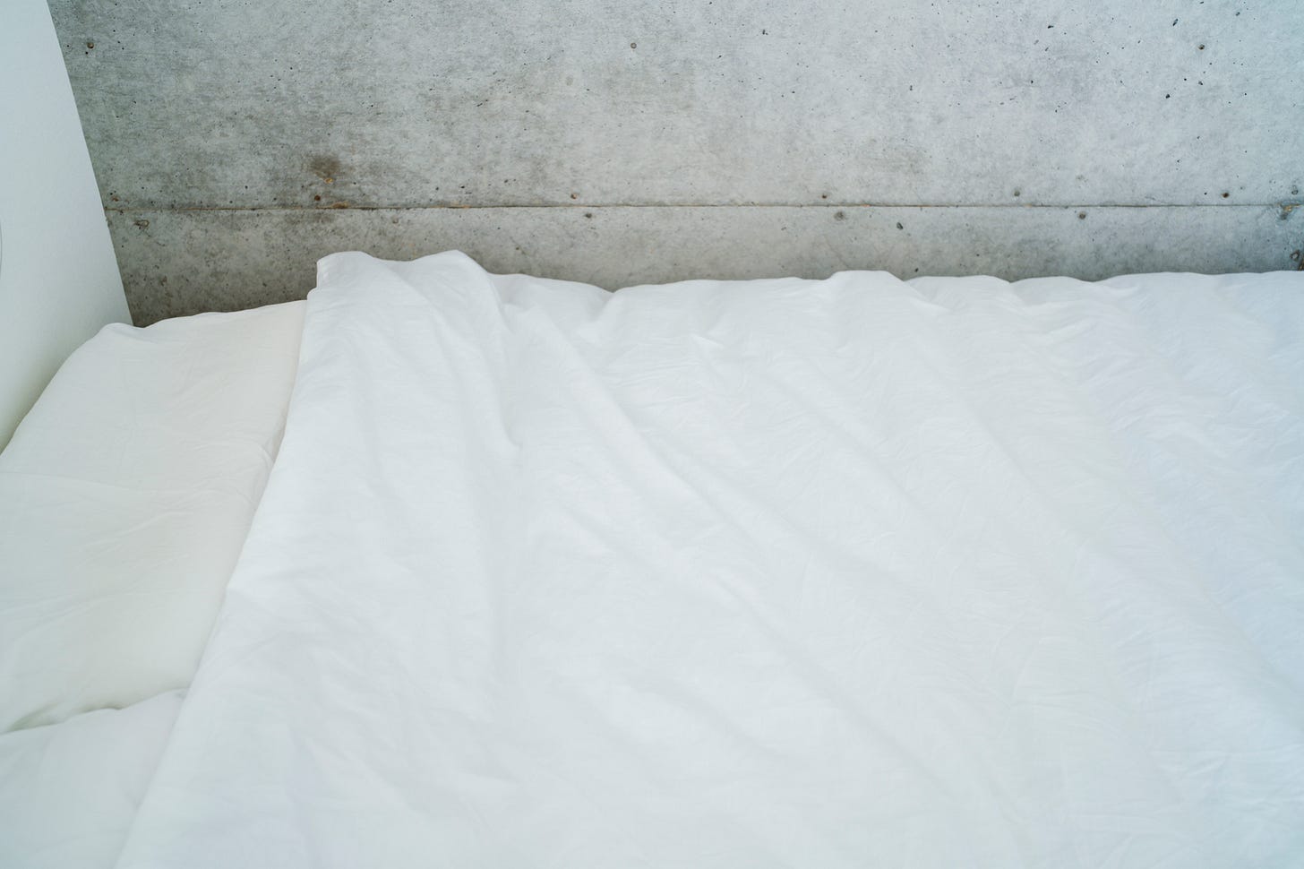掛け布団は、キャンプで使っているアウトドアブランド『Rab』の封筒型シュラフにカバーを付けて自宅でも愛用しています。L字型のジッパーを全開にすれば羽毛布団として使えるだけでなく、シリーズ同士を上下で連結することが可能なので、2つ組み合わせれば家族3人が一緒に入って寝ることができます。普段から家で使っているモノをそのままキャンプに持ち出すようにして、モノが増えてしまわないように心がけています。
