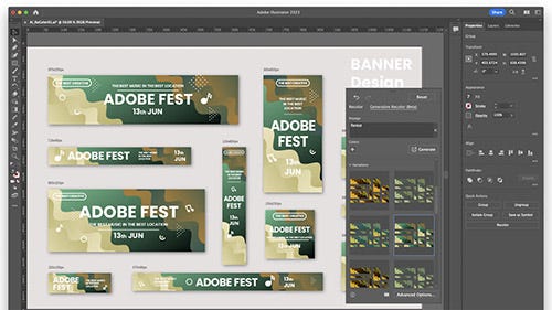 アドビが『Illustrator』にも生成AI「Adobe Firefly」を実装。プロンプトからイメージに近いカラーパレットを生成し、気になったカラーをベクターデータに適用させることができるそう。