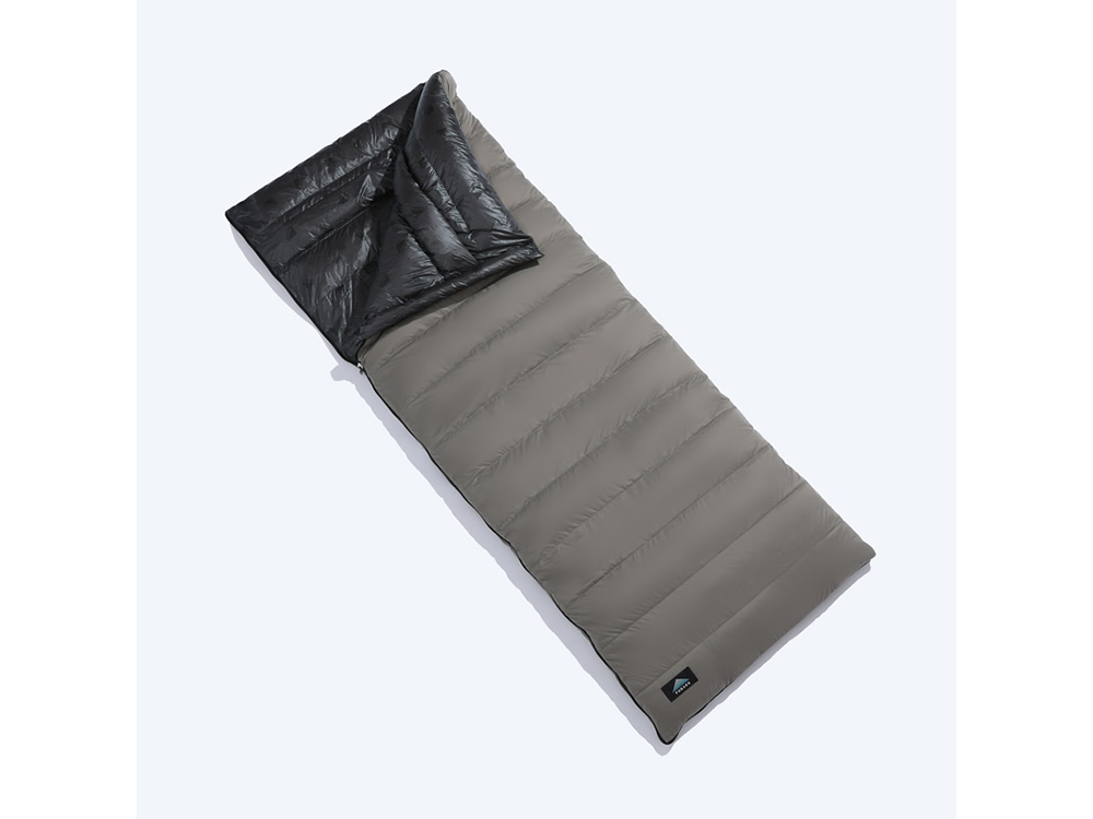 山梨県のダウンシュラフブランド『FUGAKU』による、アップサイクルダウンを使用した封筒型シュラフ。L字ファスナーを開けば掛け布団に、同モデルを連結させれば2人用シュラフとして使用可能。さらに自宅でも掛け布団として使えるようにループまで付いていて完璧ですね。