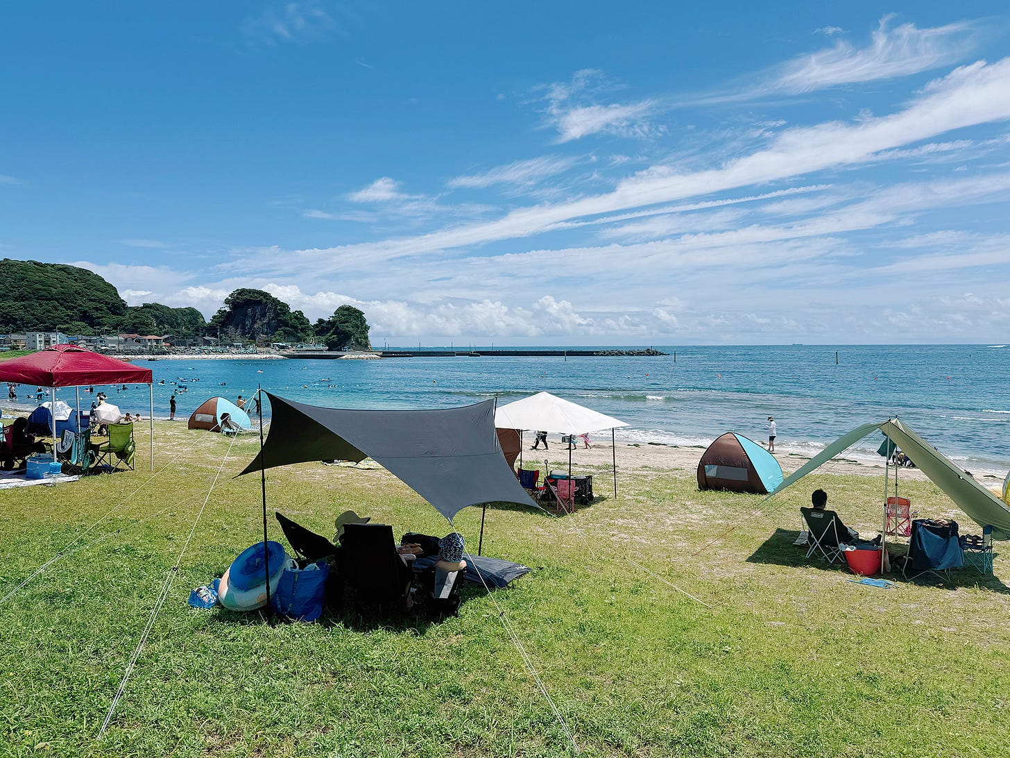 勝浦にある『興津海水浴場』に行ってきました。千葉の海とは思えない透明度で、シャワーも完備されているので、小さい子供連れも快適に遊べるし、ピークシーズンでもそれほど混まないのもうれしいですね。強い日差しから身を守るために必須の日除けも、手前の芝生エリアならペグが刺さるので、タープを張るのも楽チンですよ。