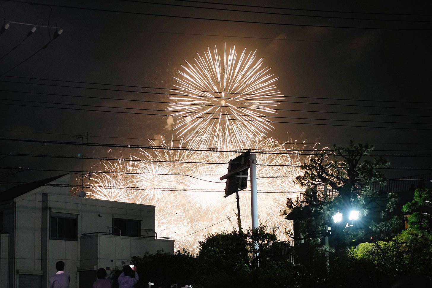 そして毎年楽しみにしている『江戸川区花火大会』は、今回は会場になっている河川敷からではなく、初めて会場近くにある公園から鑑賞してみました。もちろん会場と比べれば迫力は劣るんですが、場所取りや人混みで消耗することなく余裕を持って楽しめました。