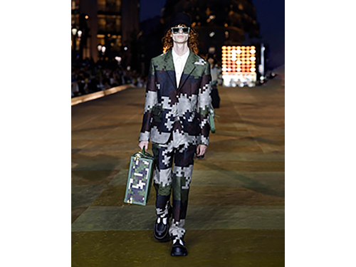 ダミエ・パターンを再解釈し、カモフラージュへとアレンジした「ダモフラージュ」を幅広く採用。ファレルらしいストリートとラグジュアリーの融合ですね。