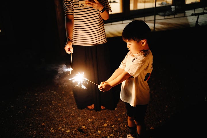 拠点周辺を散策したり、美味しいレストランやカフェでランチをしたり、夕食はベーカリーやスーパー、直売所で調達した新鮮な食材を使って自炊。夜はお酒を飲みながら焚き火を囲み、子供と一緒に花火を楽しんだりと、いつも通りゆっくり過ごしました。拠点から近い「ルオムの森」では、カフェやショップの他、森の中を散歩できたり、子供が楽しめる遊具などが設置してあるので、一緒に大はしゃぎで楽しむことができましたね。