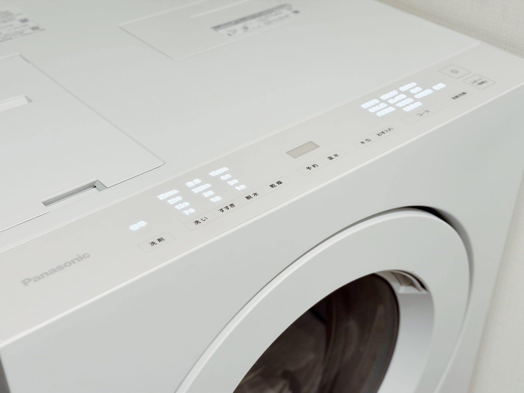 今回も同じシリーズの最新モデル『NA-SD10HBL』を選びました。これまで使っていた旧モデルは、スタイリッシュなスクエアフォルムとタッチパネル式のすっきりしたデザインで気に入っていましたが、スマートフォンからの操作や柔軟剤の自動投入など不必要な機能が多かったので、今回は必要最小限の機能のみを搭載したシンプルなモデルにしました。液体洗剤のタンクが大容量になったほか、洗濯の度に自動で窓パッキング裏の糸くずを洗浄する機能や、新たにダウンジャケット専用コースが追加され、日々の煩わしさが少し解消されましたね。