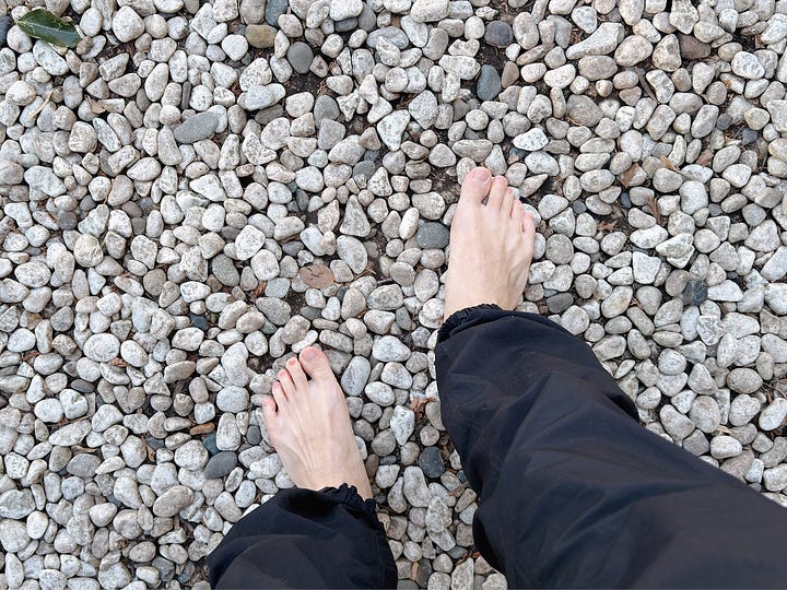 『玉前神社』は玉砂利の参道「はだしの道」が有名で、裸足になって石の上を歩くことで健康や運気が向上すると言われています。「一周目で無垢、二週目は気を入れて、三周で気を満たす」と書いてあり、ボクは訪れる度にしっかりと三周しています。足つぼマッサージのようで結構痛いですが、終わった後は足の裏がポカポカしてきて心地良いですね。